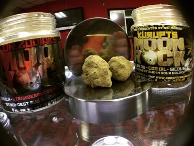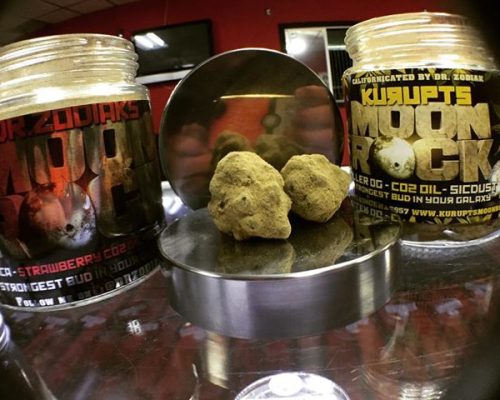 The finest Girls Scout Cookies buds, dipped in CO2 hash oil, and then rolled in sicdust ( kief ). Kurupts Moonrock is very powerful medical marijuana product – as they call “The strongest bud in your galaxy”. They have taken an Girl Scout Cookies bud and dipped it into high gear with the hash oil and kief This process leads the product to carry 51.2% THC rating. In small doses this is effective in pain reduction, stimulating appetite and nausea reduction. The product also boasts a .15% CBD rating which can combat pain, anxiety and other medical conditions. For the best taste and smoke, it is recommended to use a hash bowl or pipe, along with not breaking down the bud with a grinder as you will lose most of the kief in that process and left sticky oil in your grinder.