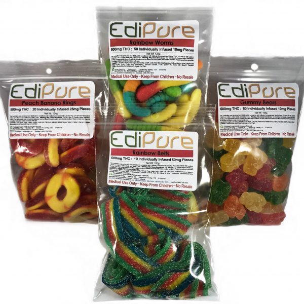 EdiPure Edibles(Min Order 10 Packs) medicinal edible products are infused with THC that’s derived from lab-grade reagents and extraction methods, EdiPure Edibles(Min Order 10 Packs), then “prepared” so that they can be infused into a host of edible products with exact THC dosing and no resulting cannabis taste. EdiPure edibles are highly effective at managing insomnia, chronic pain conditions, and symptoms of anxiety and depression. They also come in a range of doses, making them ideal for both beginner and seasoned patients.
