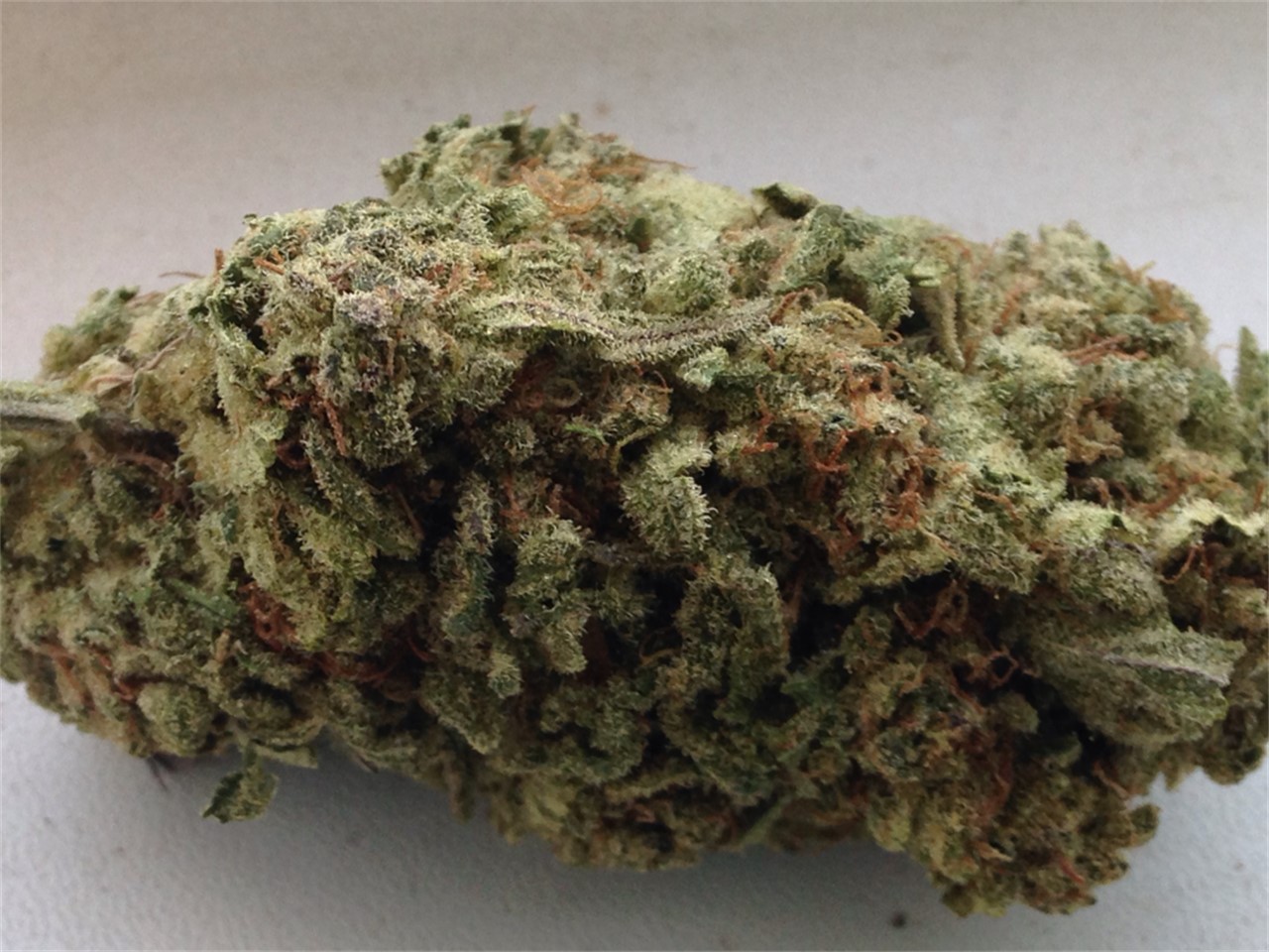 Look – This strain looked way more like Sour Diesel than Strawberry Cough. Darker green spear tip shaped buds with peach colored pistils, the trichome coverage gives it a grey looking color under certain lighting. This bud isn’t too compact, not really airy though.