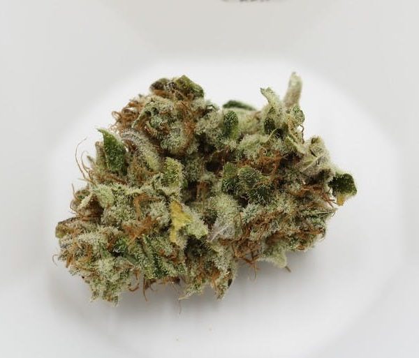 Look – This strain looked way more like Sour Diesel than Strawberry Cough. Darker green spear tip shaped buds with peach colored pistils, the trichome coverage gives it a grey looking color under certain lighting. This bud isn’t too compact, not really airy though.